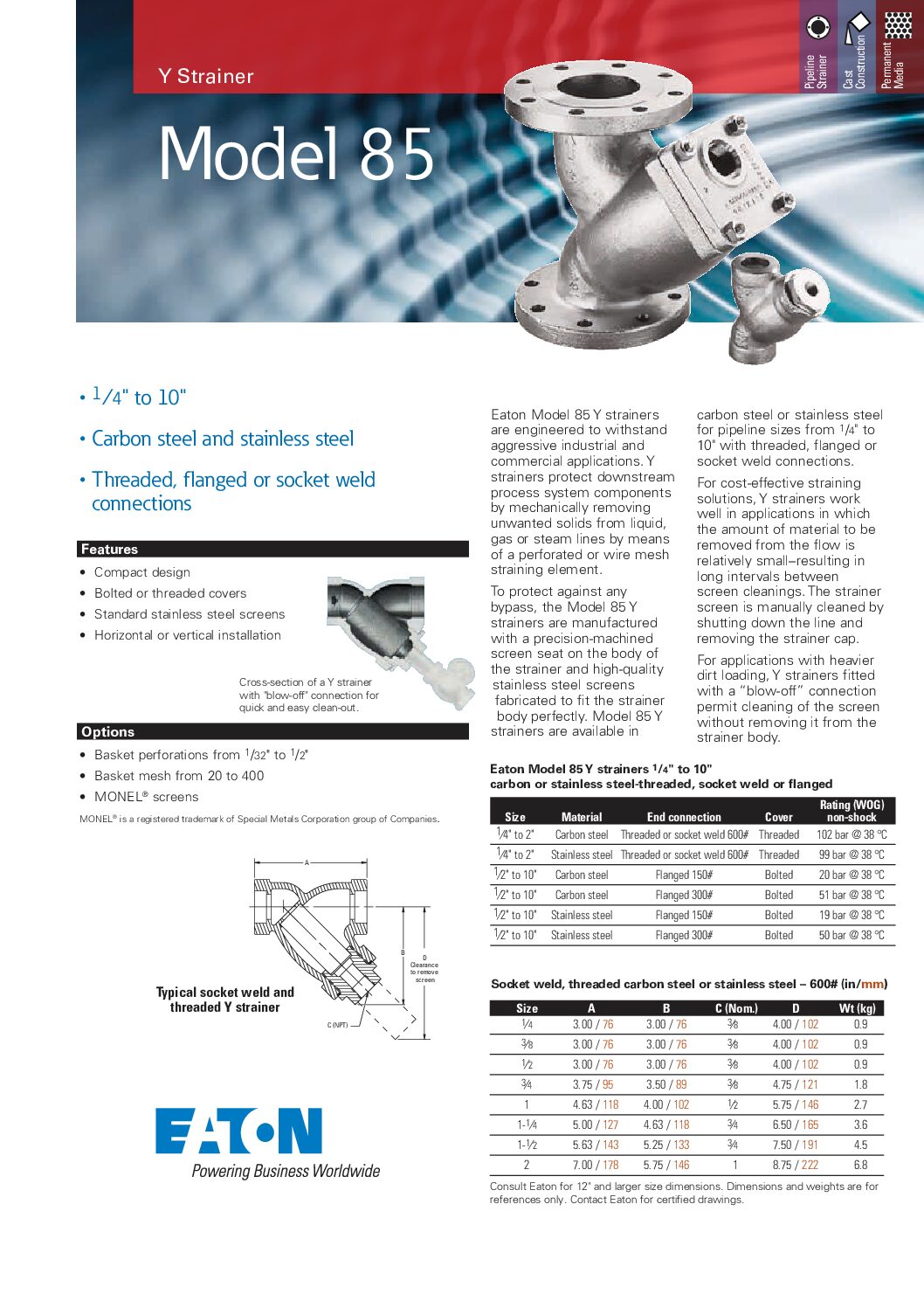 Y Type Strainer Flange/NPT is compact, easy to clean and features a removable drain plug and Stainless Steel screen mesh. It provides an economical solution and is recommended for applications where damage to valves and other related mechanical equipment needs to be avoided.