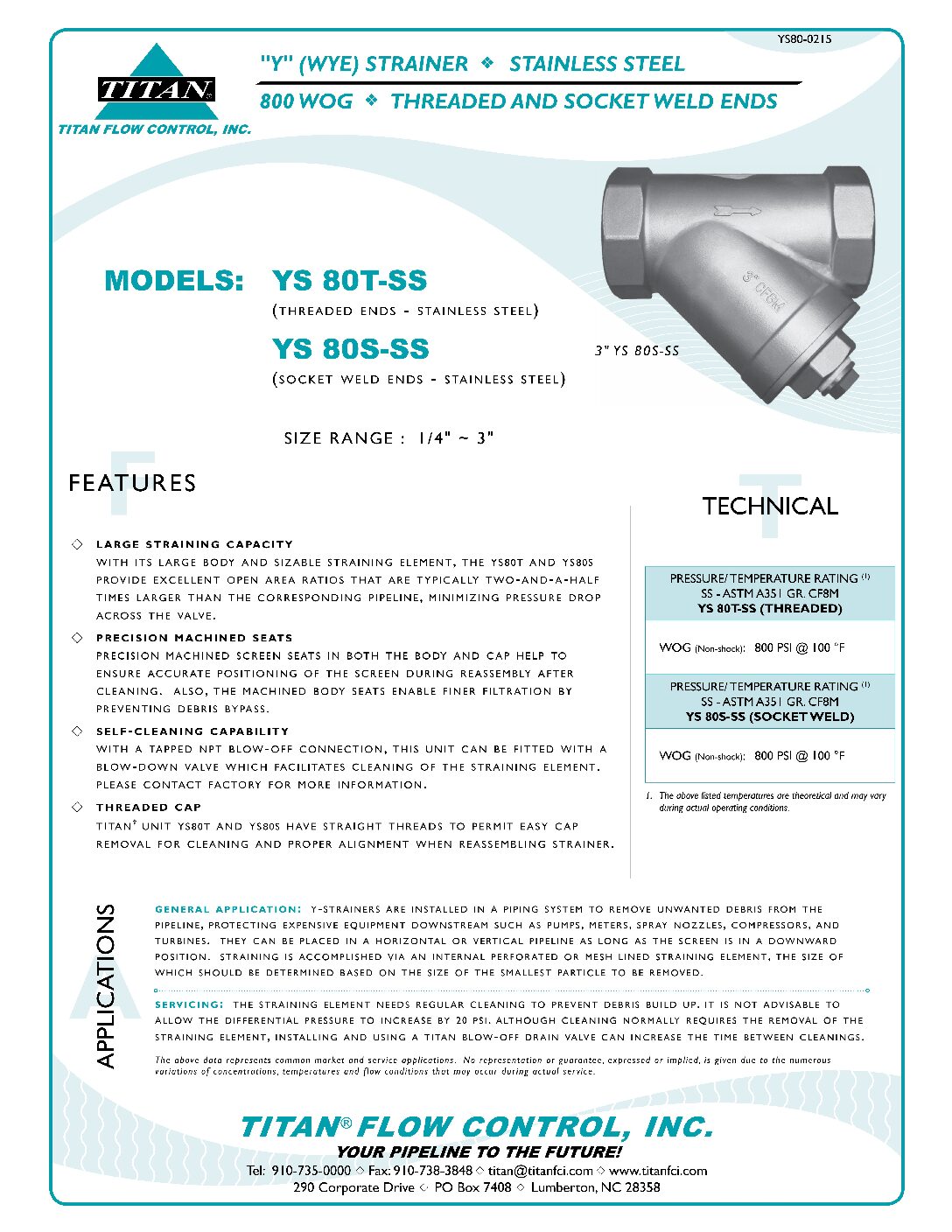 Titan Flow Control YS 80S-SS Series Socket-Weld End Y-Strainer, ANSI Class 800, Stainless Steel (A351 Gr. CF8M), 800 psi @ 100 °F WOG, 1″ Socket-Weld, 1/32″